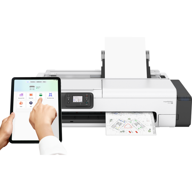 imagePROGRAF TC-21 מספקת הדפסות איכותיות בעלות סבירה עם אותו עיצוב קומפקטי שמתמודד עם מגוון היישומים של משרדים קטנים במגזר ה-AEC, חנויות קמעונאיות, מקומות אירוח, בתי ספר, ללא קשר למגבלות התקציב והמקום.